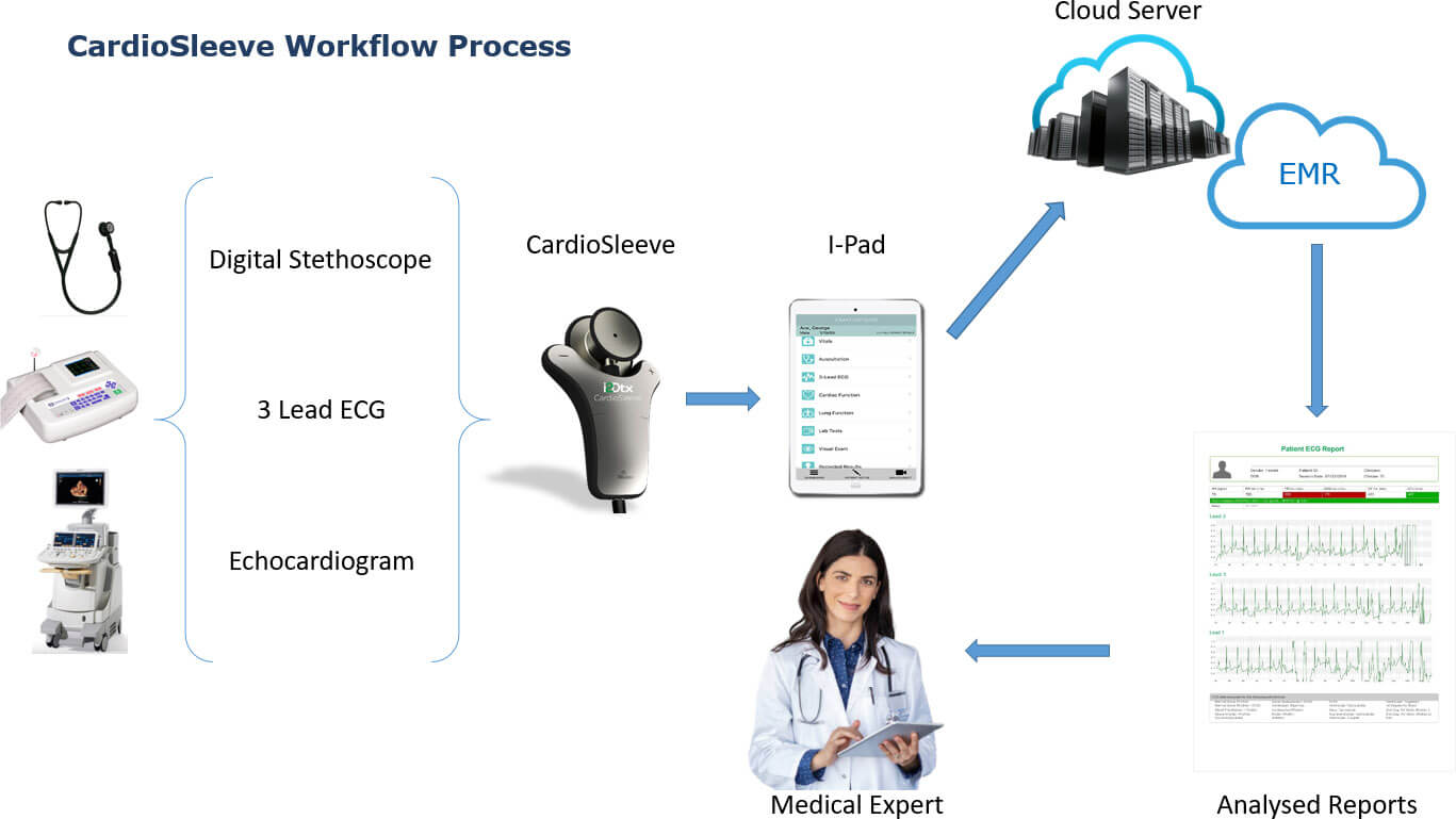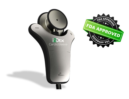 EpicFusion’s CardioSleeve is the first FDA Approved stethoscope attachment device for clinicians to acquire 3-Lead ECG and Digital Heart Sound at any point of care. It enhances the traditional stethoscope by recording, displaying and analyzing ECG and acoustical footprints, synchronized, in real time to any wirelessly connected portable device.